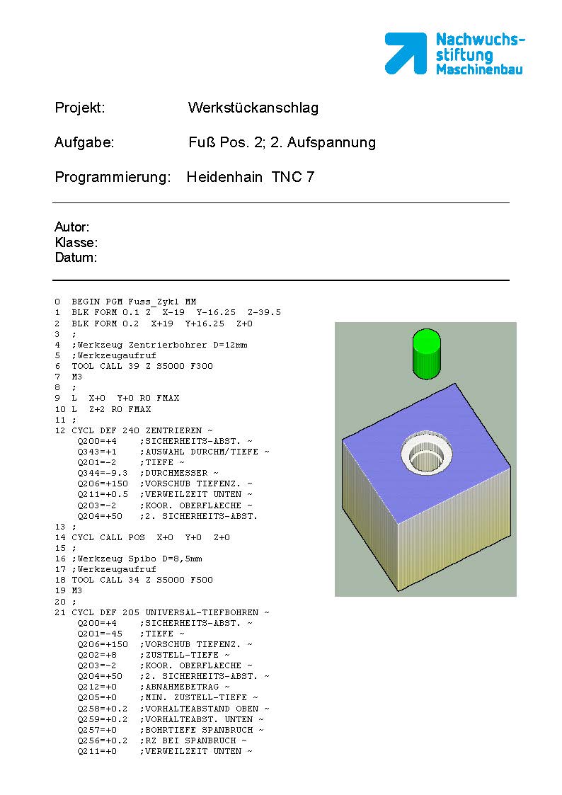 Programmdarstellung Fußteil zweite Aufspannung